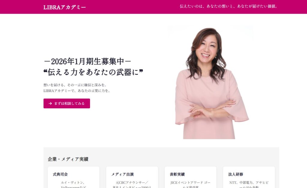 - 事業内容:話し方・伝え方を学ぶパーソナルトレーニング事業